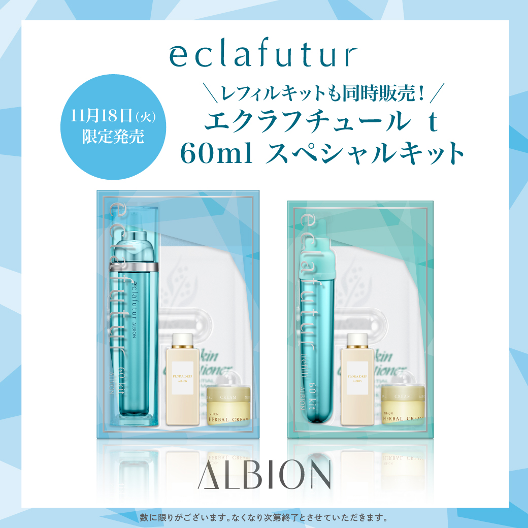 アルビオン エクラフチュール t(60ml)現品に、フローラドリップとスキコンマスクの人気アイテムセットした今だけ限定キット3種が2022年11月18日(火)限定発売。